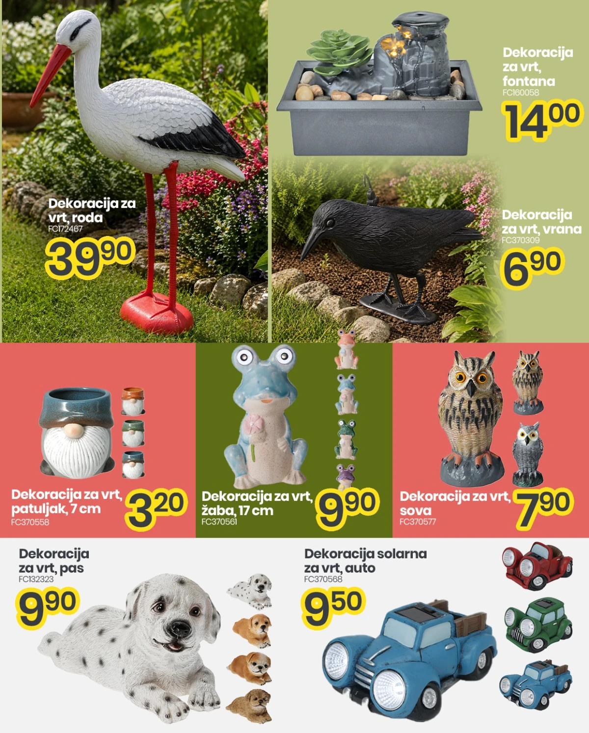 FIS donosi novo u ponudi vrtne dekoracije koje su idealne za uređenje dvorišta, bašte ili balkona. U katalogu se nalaze raznovrsni ukrasi poput figura životinja, patuljaka, solarnih lampi, kućica za ptice i dekorativnih dodataka koji unose živost i stil u svaki vanjski prostor.