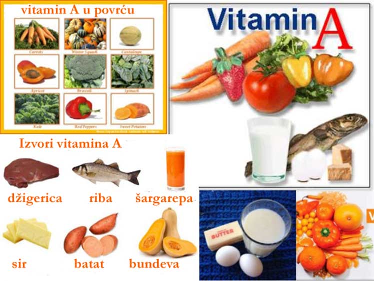 Vitamin A je lako dostupan u namirnicama koje možete svakodnevno lako nabaviti i konzumirati: Jaja, džigerica i riblje ulje a čak i punomasni mliječni proizvodi (mlijeko, puter) spadaju u ovu grupaciju resursa vitamina A. A za one koji se hrane više na biljnoj bazi i tu ima rješenja za snabdijevanje vitaminom A. Za to je odlično zeleno lisnato povrće , kao žuto-narandžasto povrće i voće koje sadrži beta karoten. Naime, organizam stvara iz beta karotena ovaj vitamnin A. Konzumirajte bundevu, tikve, dinje, mrkvu, breskve, kajsije, dren, brusnice, paradajz, crvene paprike i nećete biti u deficitu sa vitaminom A. Jetra je ta koja skladišti ovaj vitamin (tj. održava njegov nivo u organizmu) i po potrebi ga ispušta. Smatra se da čak 50% karotenoidi obezbeđuju vitamin A.